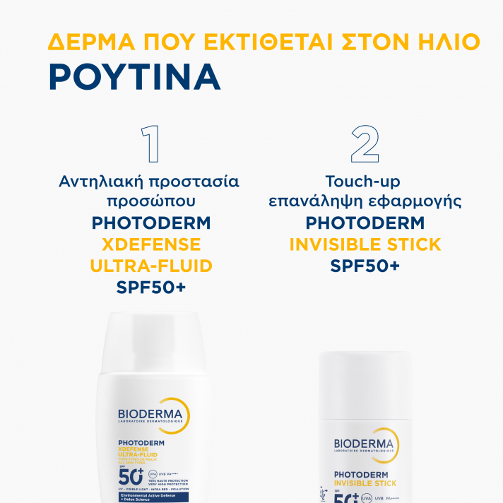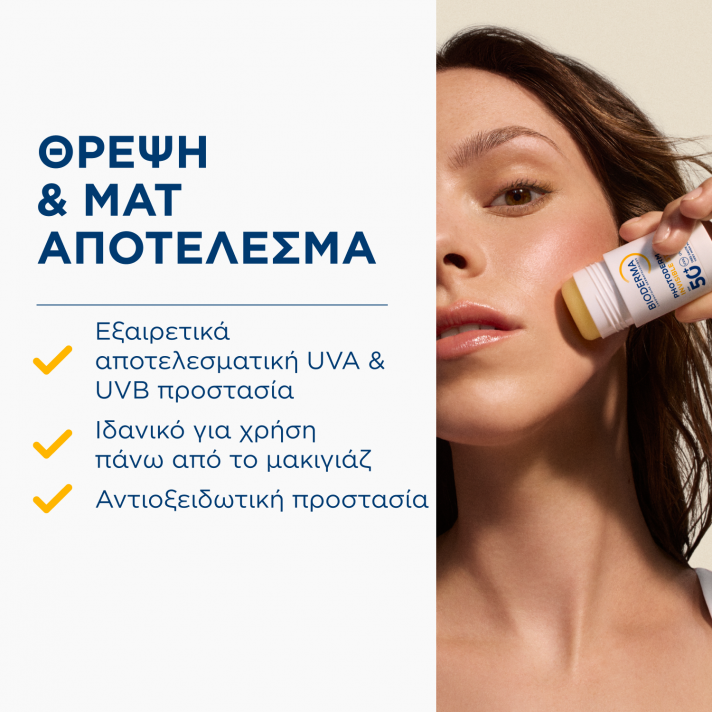 Το Photoderm Invisible Stick SPF50+ έχει ειδικά σχεδιαστεί για να προσφέρει διπλή προστασία από τον ήλιο.