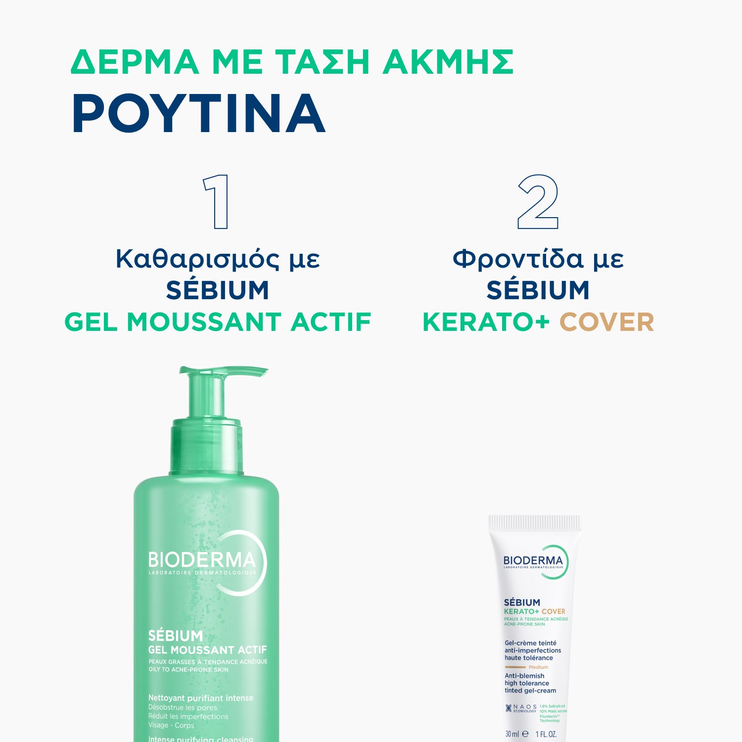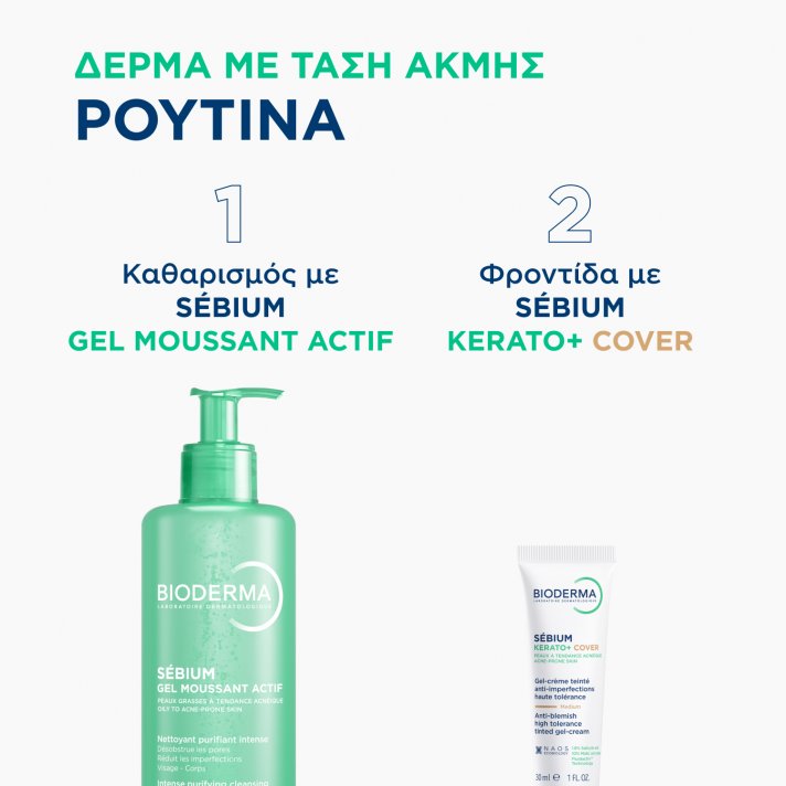 Το δέρμα με τάση ακμής είναι ένα συχνό δερματικό πρόβλημα που εκδηλώνεται με μαύρα στίγματα και λευκές ή κόκκινες κηλίδες με διαφορετικό βαθμό σοβαρότητας. Η ακμή μπορεί να σας κάνει να νιώθετε άβολα και έτσι να έχει σημαντικό αντίκτυπο στην ποιότητα της ζωής σας. Για να αντιμετωπιστεί σωστά και μόνιμα, το δέρμα με τάση ακμής χρειάζεται μια ολοκληρωμένη λύση που να εγγυάται υψηλή αποτελεσματικότητα στα αίτια της ακμής, ενώ ταυτόχρονα να σέβεται την ισορροπία του δέρματος (προϊόν με υψηλή ανεκτικότητα για να εξασφαλίζει καθημερινή εφαρμογή και να αποφεύγει τον ερεθισμό). Συμβαίνει μερικοί άνθρωποι να νιώθουν αμηχανία για την εμφάνιση του δέρματός τους λόγω της παρουσίας ακμής. Για να καλύψουν αυτές τις ατέλειες, οι ασθενείς μπορεί να εκτιμήσουν ένα προϊόν περιποίησης δέρματος με χρώμα.