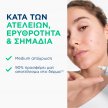 - Μειώνει ορατά τις ατέλειες, τις κοκκινίλες και τα σημάδια